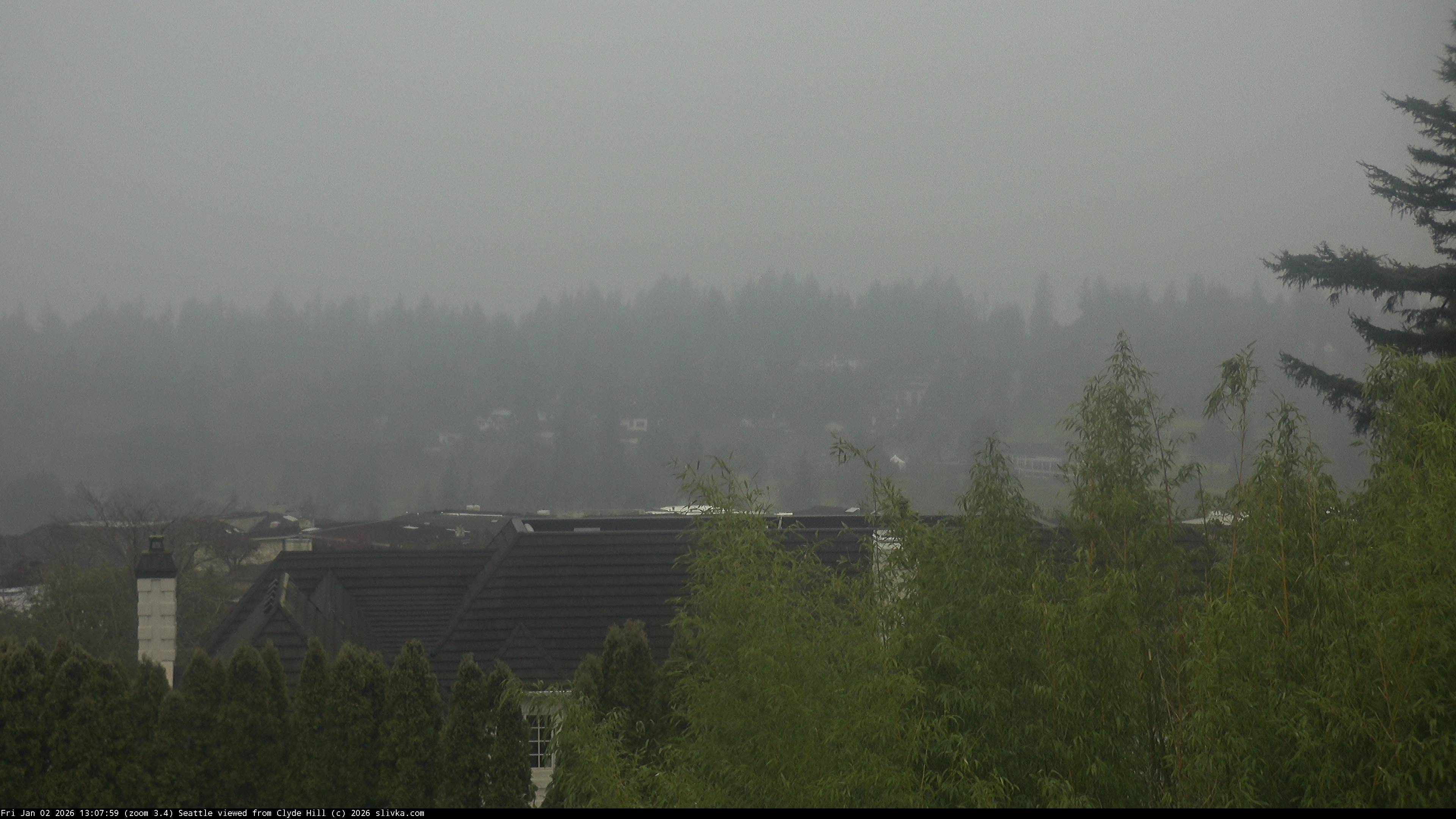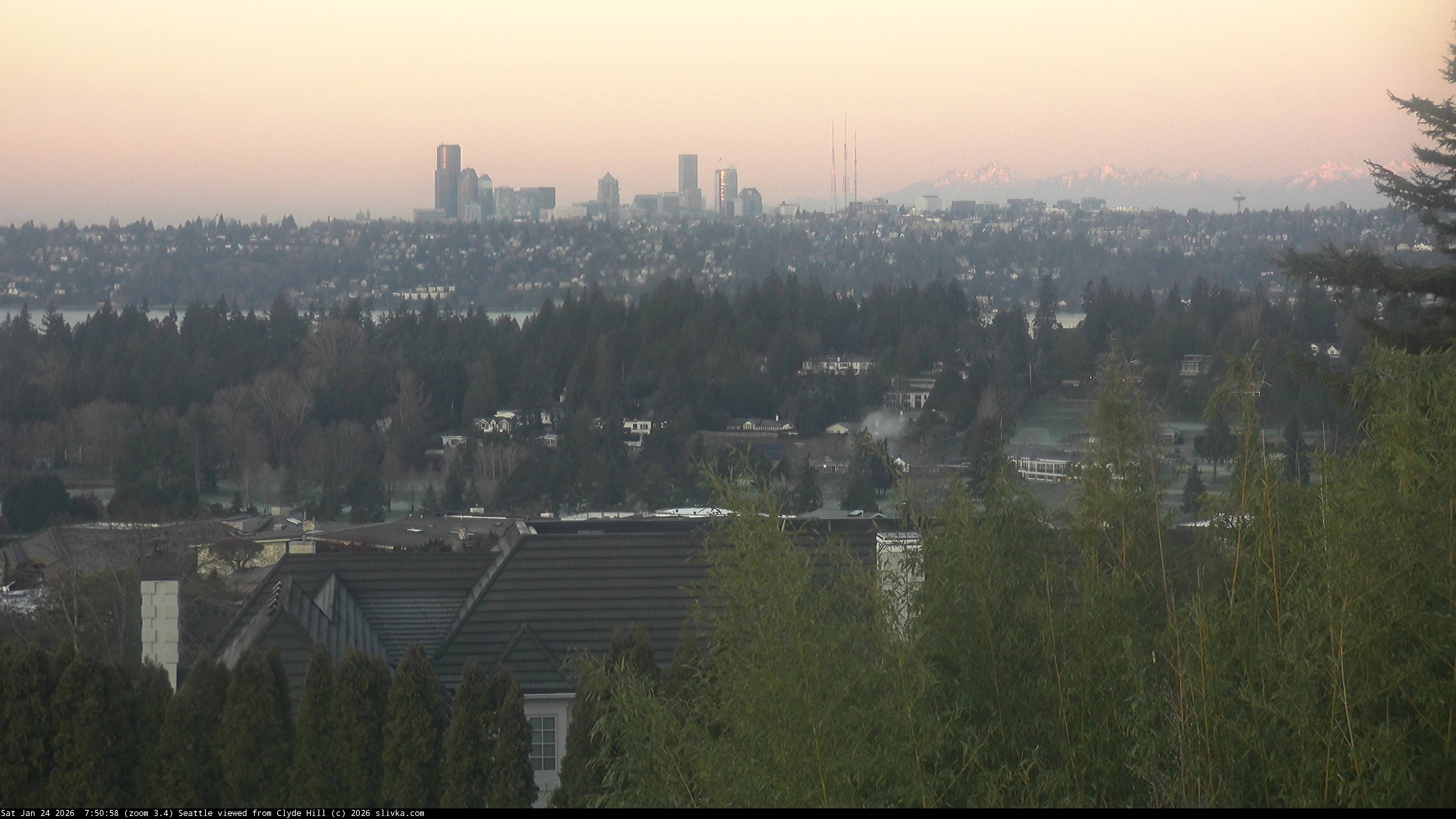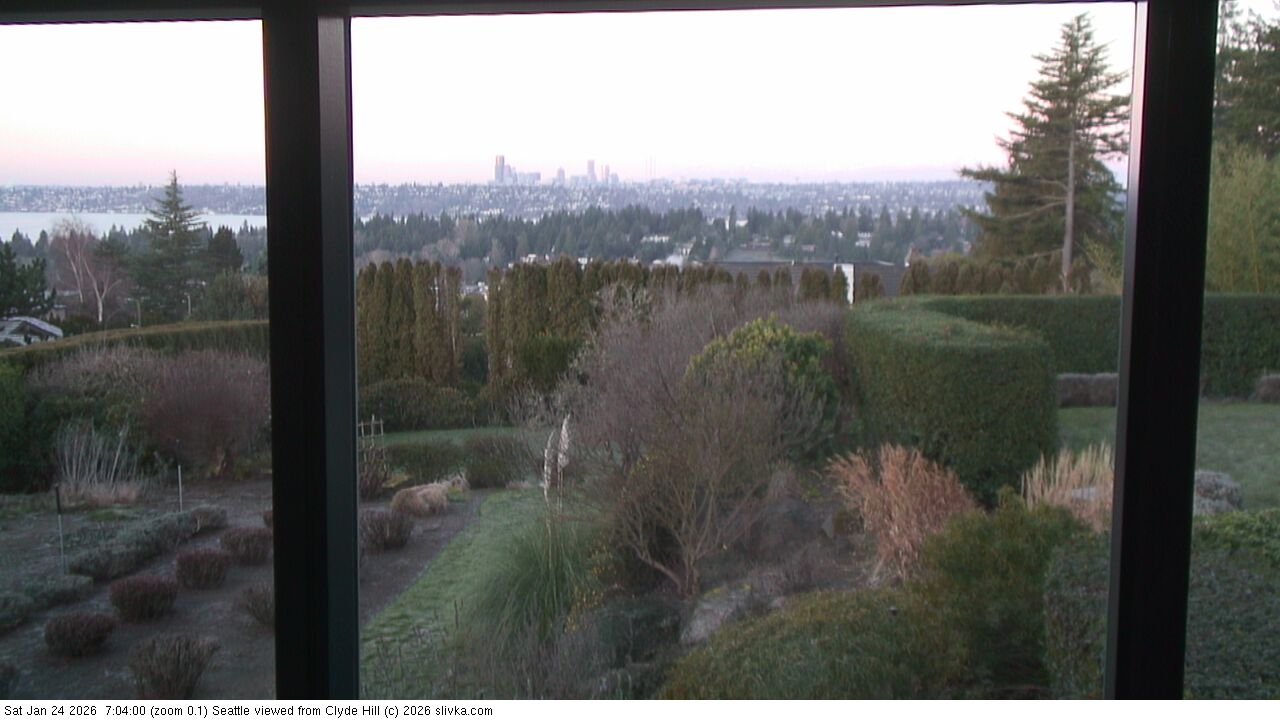 The three web cameras are facing west toward Seattle from near the top of Clyde Hill, Washington, USA.