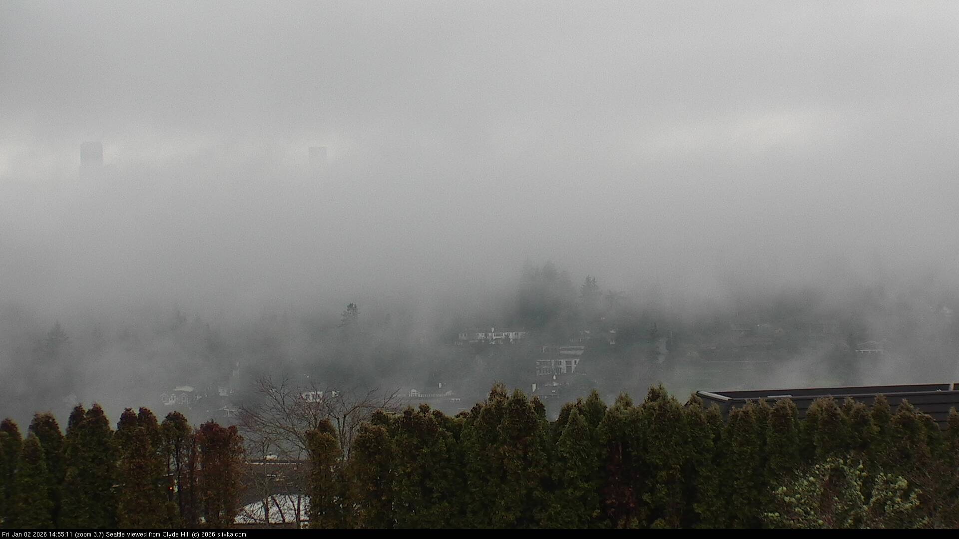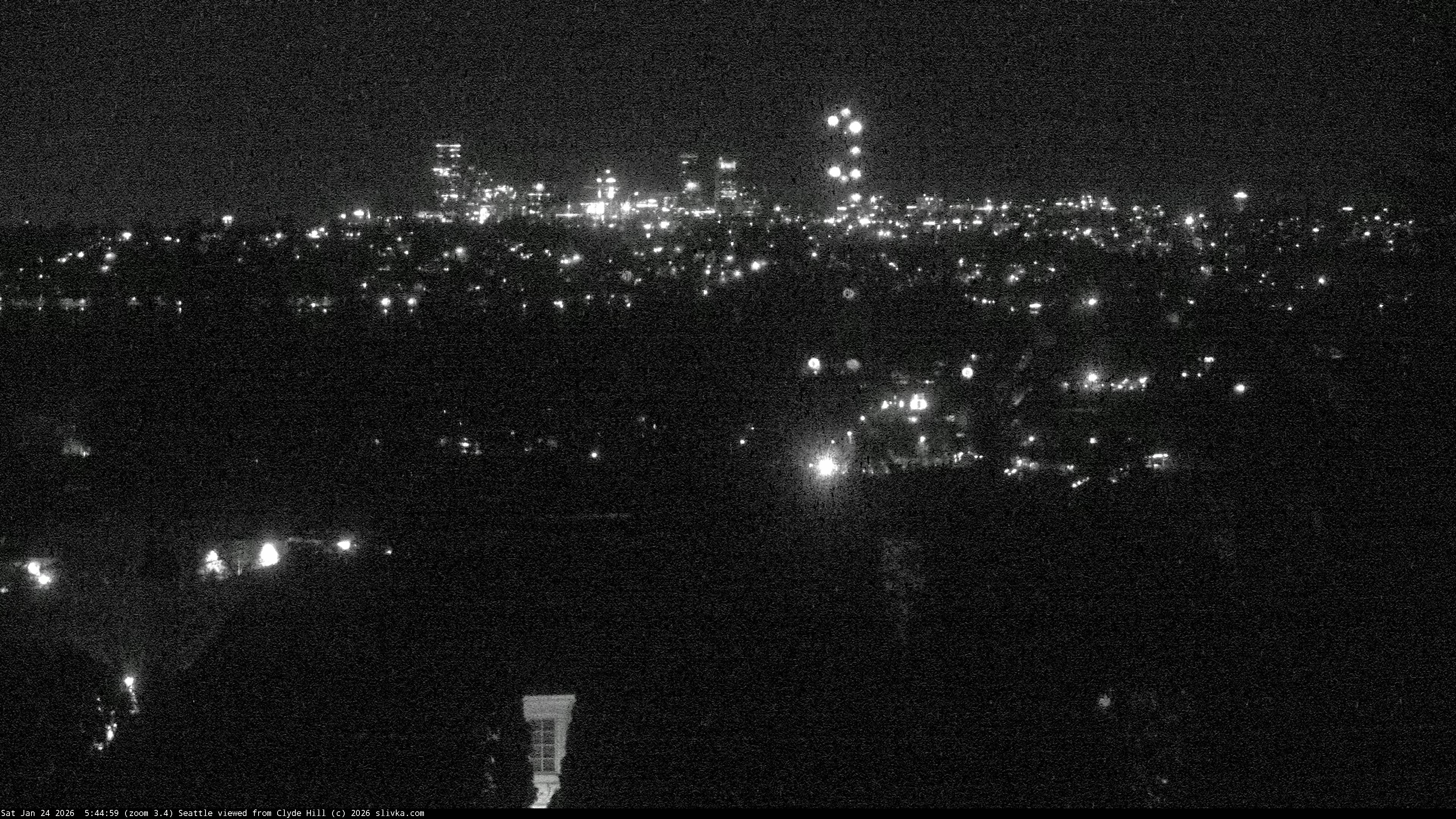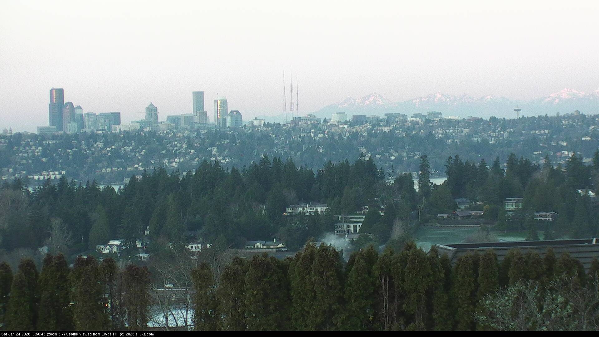 The three web cameras are facing west toward Seattle from near the top of Clyde Hill, Washington, USA.