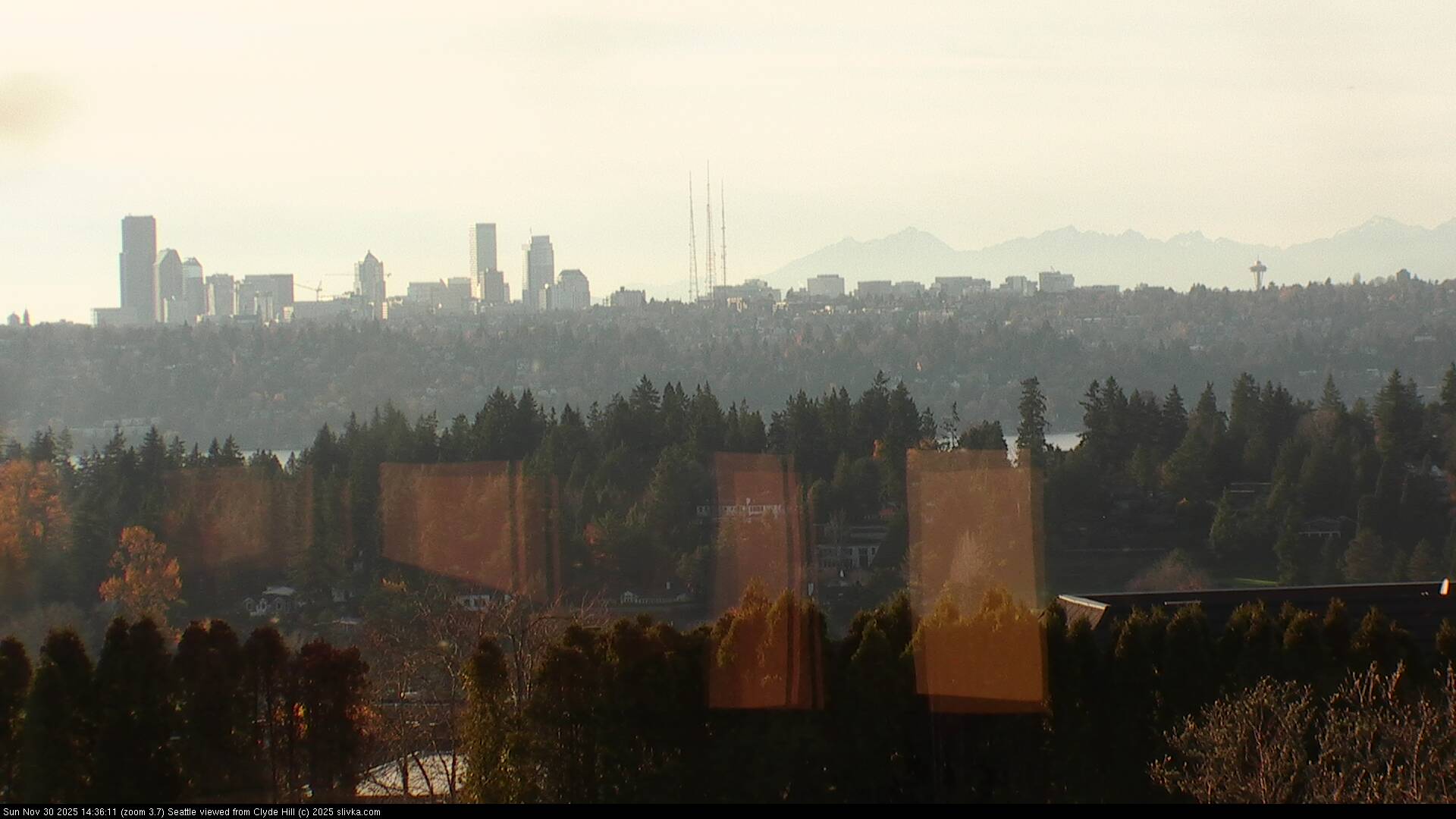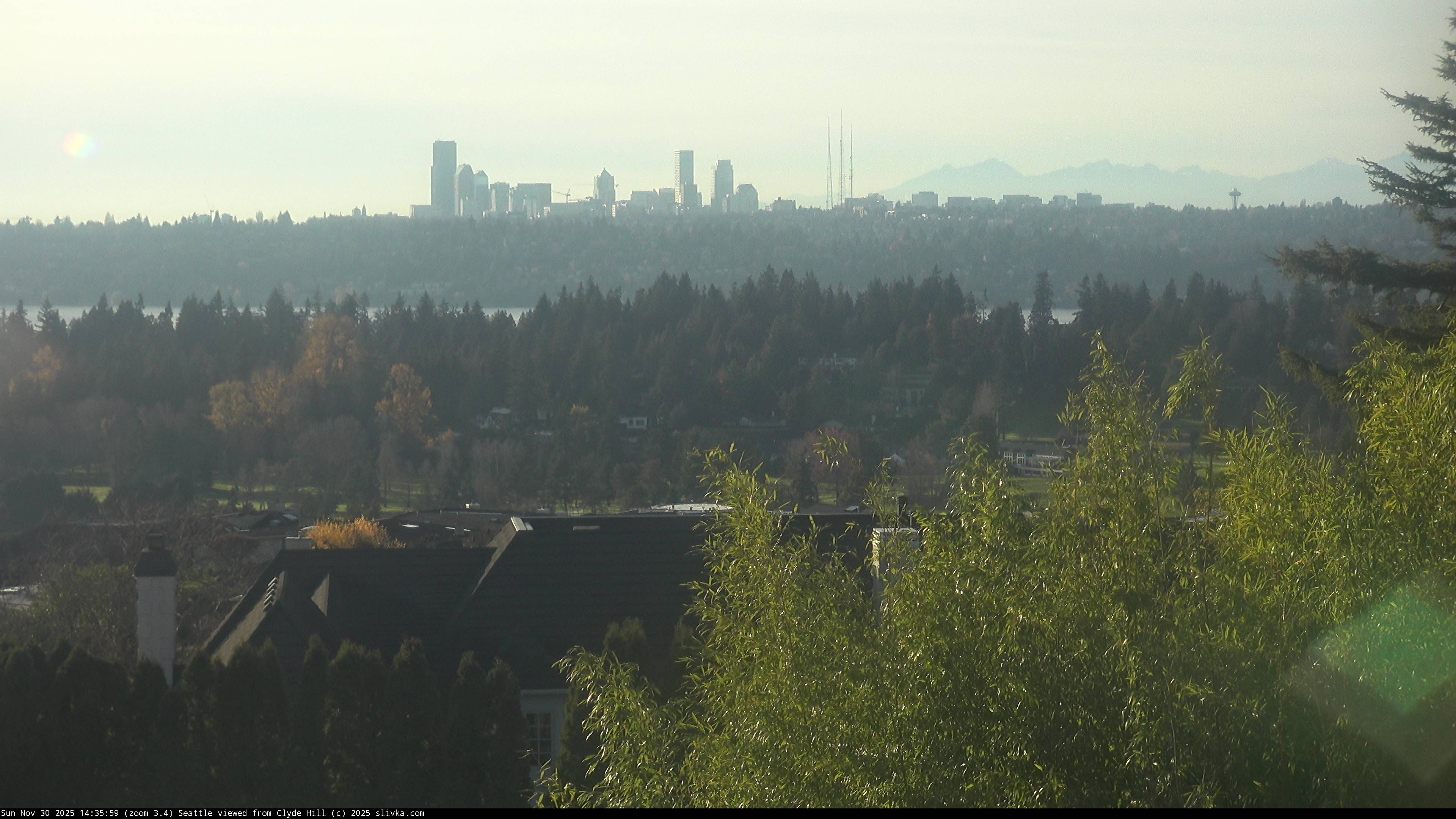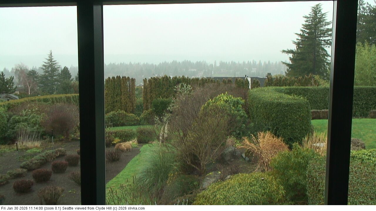 The three web cameras are facing west toward Seattle from near the top of Clyde Hill, Washington, USA.